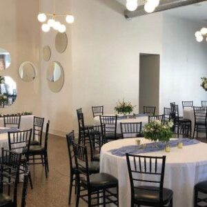 The Rialto Banquet Hall can accommodate up to 275 seated guests comfortably, depending on your event layout. The open floor plan allows flexibility for different seating arrangements and event styles.
